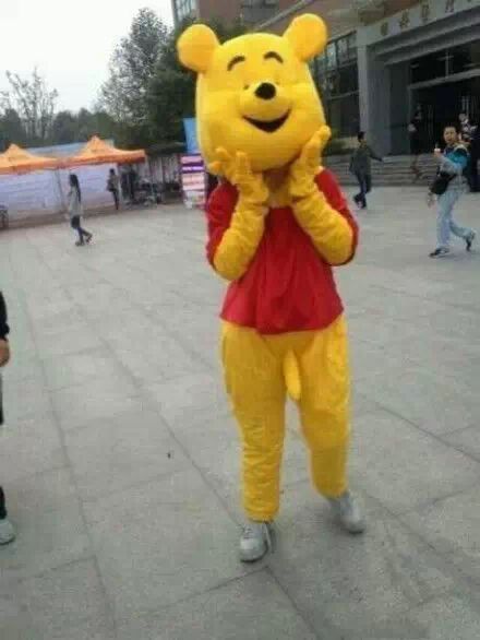 4、一哥们想捞点外快,去公园扮维尼熊。尼玛,结果裤子穿反了,真是醉了!