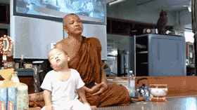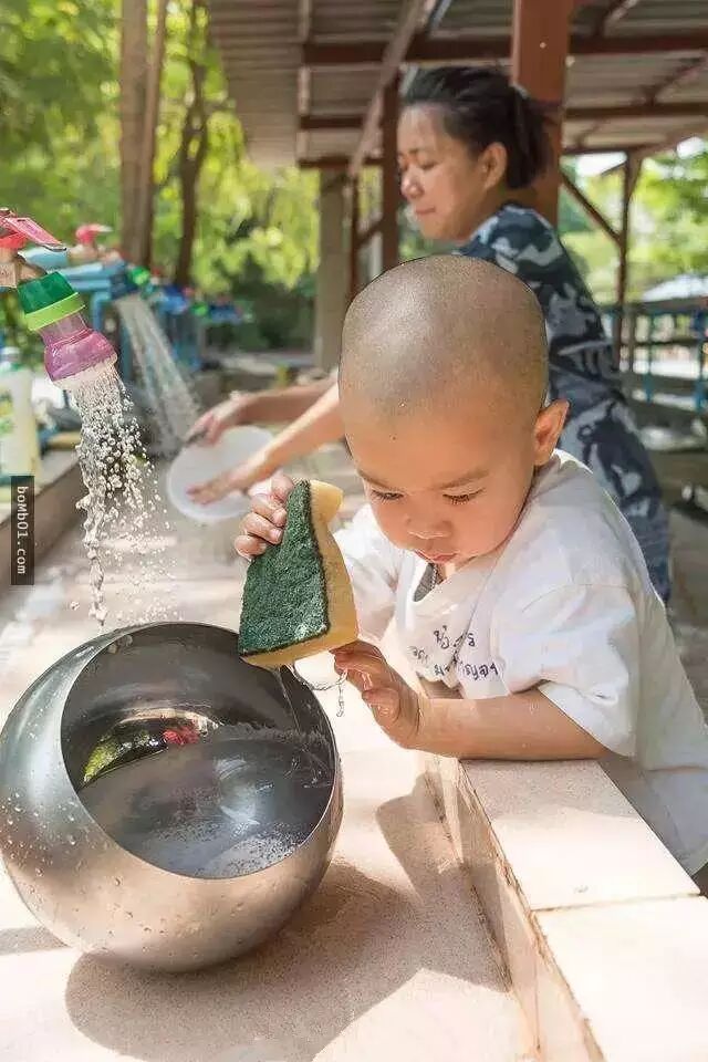 孩子的可爱天真,让成为小和尚的nongkorn第一时间萌化了所有人,或许这也是佛度世人的一种修行吧!正如那句:真心无始,自性清静。