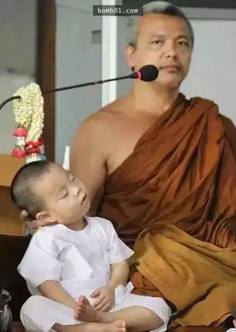 因为年纪太小,又要早起,所以nongkorn常常会在打坐的时候睡着。