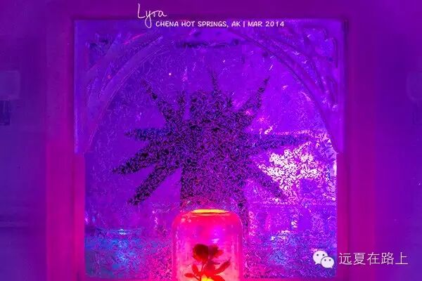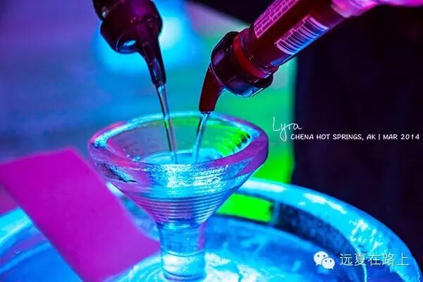 除了极光之外,Chena Hot Springs赖以成名的温泉也不能错过。在室外的冰天雪地里,头发上带着冰碴泡温泉,以及冒着热气顶着寒风跑回更衣室,都是不可多得的享受。这里还有一个全年开放的冰雕博物馆,可以在冰吧台用冰杯喝马提尼,值得一试。