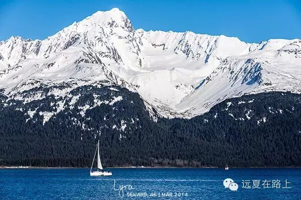 夏季的Seward是一个非常繁忙的港口城市,挤满了游客、渔民和船员。春天这里却是空山寂寂,四顾无人。Seward Highway是阿拉斯加著名的景观大道,开在公路上,眼前一半是雪山,一半是海水。看着海上漂过一只白色的帆,看着艳阳下的皑皑白雪,一下午就这样过去了。