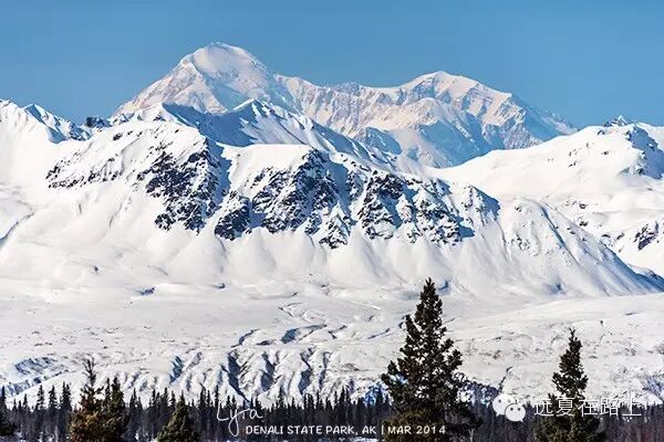 三月的阿拉斯加,天空一碧千里,晴得丧心病狂,是最容易看到Denali的季节。夏秋两季羞答答不肯露面的北美最高峰,春天在公路上就能看得一清二楚。因为五月之前,Denali公园的大部分都还在关闭状态,看山的最佳角度就是南边的Denali Viewpoint South。根据每一年的天气状况,有时公园里的Park Road在三月底就可以开放到15英里的检查站。(回复06阅读Denali看山记)